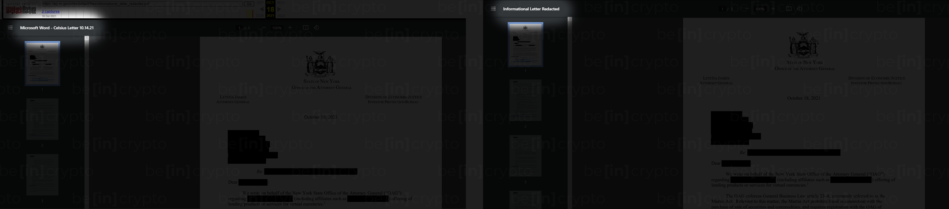 На момент написания материала обновленные документы называются «Informational Letter Redacted». Однако сохраненная копия предписания с отсылкой на Nexo и Celsius все еще есть в открытом доступе. Согласно предписаниям, неназванные компании незаконно оказывают услуги без наличия необходимой регистрации. Официально остается неизвестно, выдвинуты ли требования Celsius или Nexo.