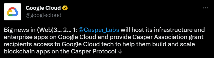 Сообщается, что сотрудничество позволит Casper Labs переместить часть своей инфраструктуры на сервера Google Cloud. Также организация Casper Association получит доступ к хранилищу и хостингу облачного провайдера. Помимо блокчейна Casper, в Google Cloud также оказывают услуги по подключению к сетям Ethereum и Tezos.