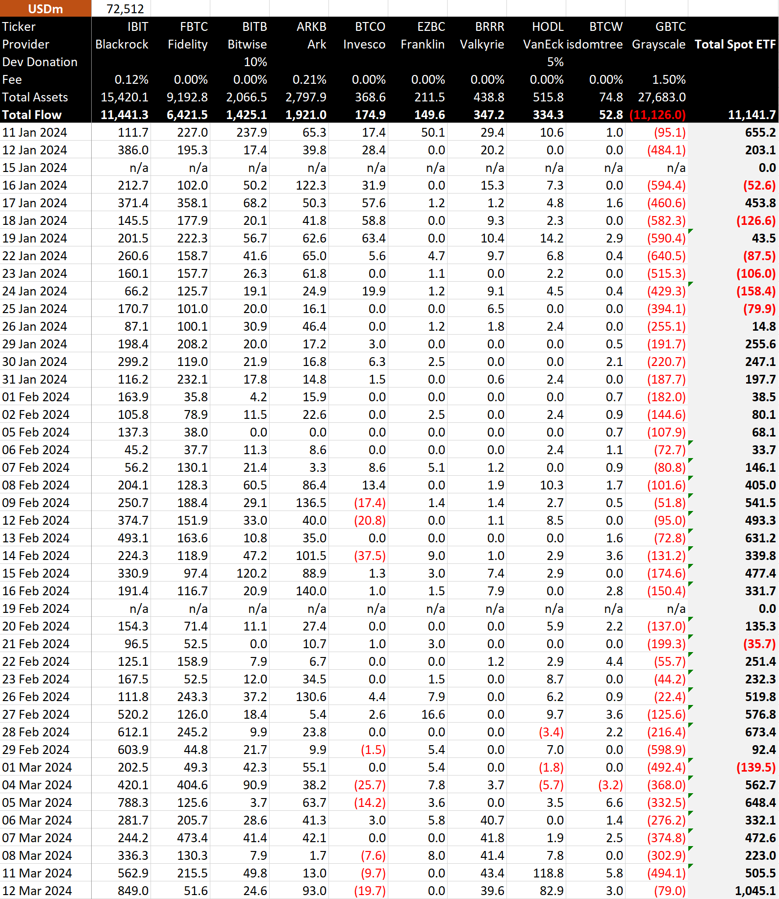 В первый месяц после запуска нового инструмента на рынке США отток средств из GBTC был значительным. За несколько недель из фонда вывели порядка $7 млрд. К концу января динамика начала замедляться.