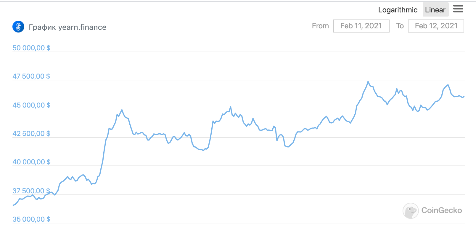 Новость подогрела интерес на рынке к сегменту децентрализованных финансов. Крупные токены резко подорожали, например, YFI вырос на 26% и обновил исторический максимум на уровне $47 400. После продолжительного периода вялой ценовой динамики YFI наконец-то проснулся и возобновил рост. На момент написания статьи токен торгуется на уровне $46 000.