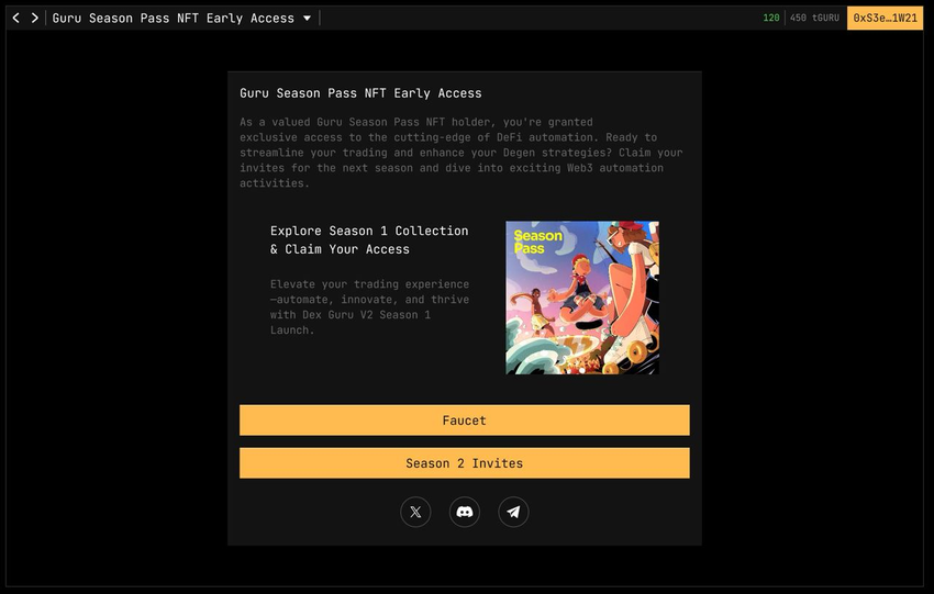 Евгений: Мы запускаем DexGruu V2 Auto — версию с совершенно новым интерфейсом и автоматизацией Web3 активностей. Сначала состоится этап приватного бета-тестирования — с этим нам поможет сообщество владельцев Guru NFT Season Pass — а затем V2 станет доступна для широкой публики вместе с запуском Guru Network Mainnet. Кину несколько скриншотов, которые говорят сами за себя: