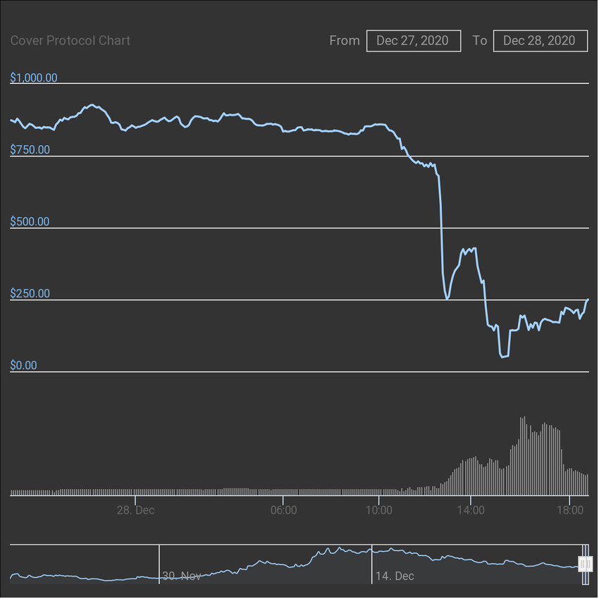Рыночная капитализация COVER в моменте упала до $1 млн. На момент написания статьи проект уже частично восстановилась от минимумов до $33 млн.