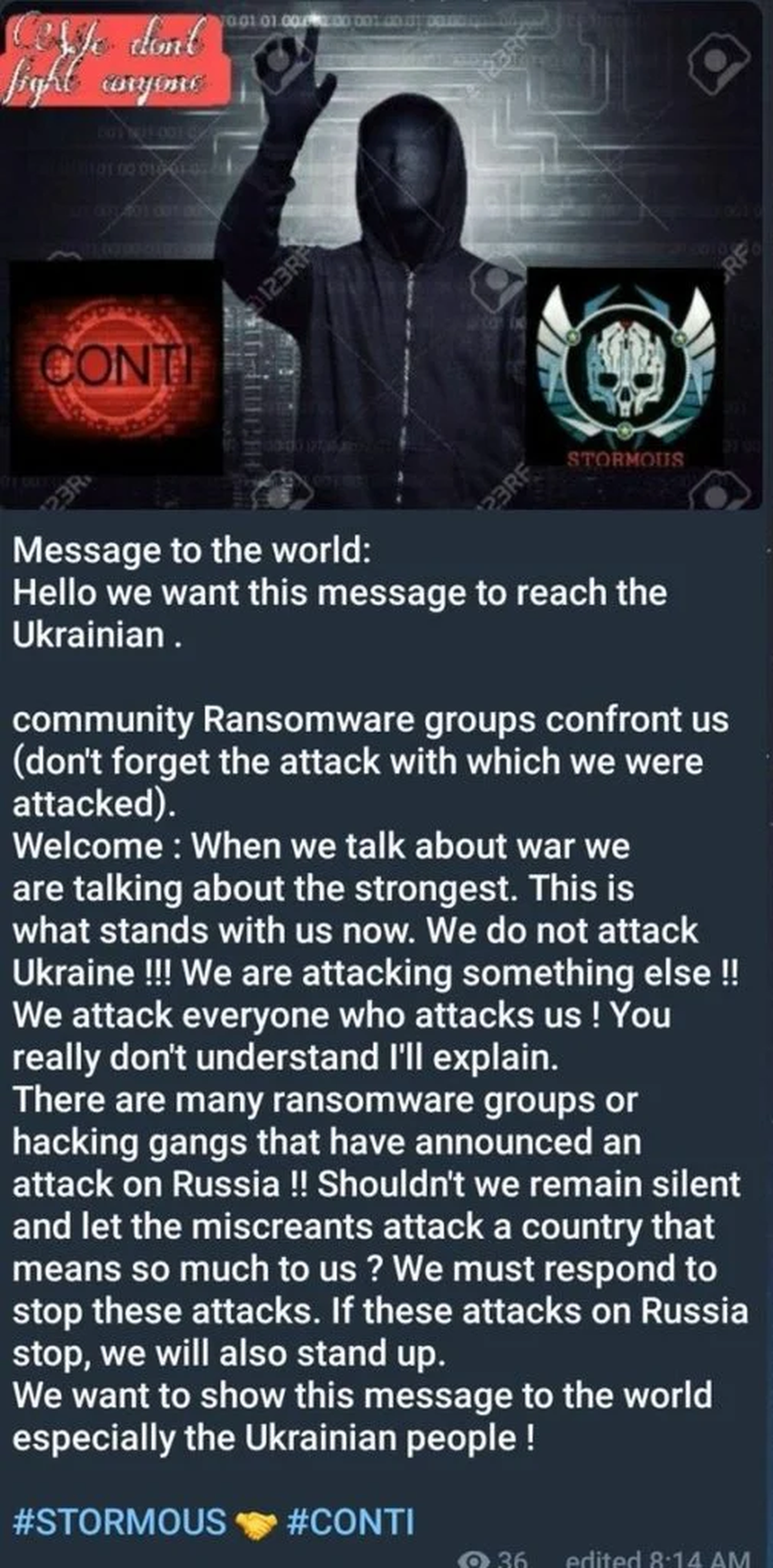 Как полагают в BleepingComputer, группировка является пророссийской, поскольку ранее заявила о своем намерении атаковать зарубежные страны в ответ на хакерские атаки в адрес России. О своей позиции группировка сообщила после начала геополитического конфликта с Украиной.