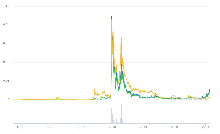 На данный момент монета XVG находится на 103 месте рейтинга Coinmarketcap, а стоимость актива составляет $0,02.