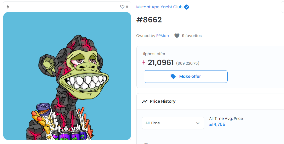 SponsoredИзвестно, что сумма хищений составляет минимум $70 000, поскольку злоумышленникам удалось похитить NFT MAYC #8662. Его стоимость на момент написания материала оценивается в ~$70 000, по данным OpenSea.
