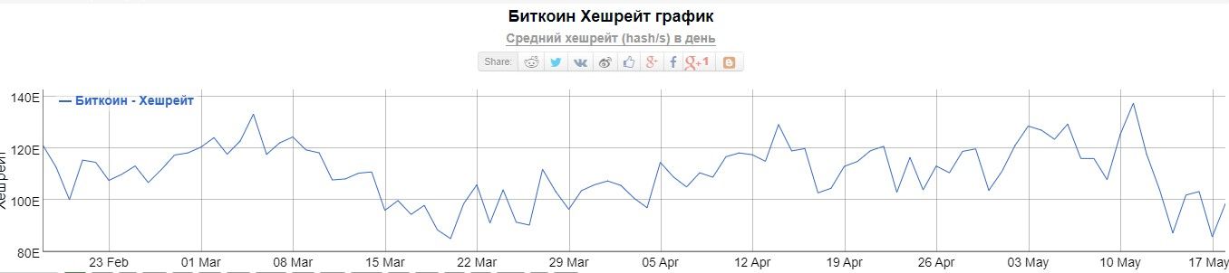 До 11 мая он был на уровне 137,57 EH/s, а в первые 5 дней после сокращения награды значение резко упало до 87,1 EH/s. Таким образом, хешрейт снизился на более, чем 36%. По состоянию на 19 мая 2020 года этот показатель равен 98,55 EH/s. Это свидетельствует о том, что многие майнеры и майнинговые пулы начали отключать оборудование для добычи биткоина из-за потери рентабельности.