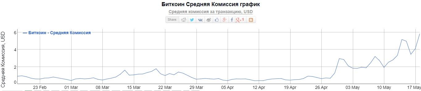 В преддверии третьего халвинга многие эксперты заявляли, что с уменьшением награды за добычу нового блока стоит также ожидать рост транзакционных комиссий. Мы могли наблюдать постепенное увеличение комиссионных сборов за месяц до события. Так, в середине апреля средняя комиссия составляла $0.39. В преддверии уменьшения награды показатель вырос до $3.19. Резкий скачок наступил сразу после халвинга, когда комиссионный сбор поднялся до $5.16. В связи с этим прибыль майнеров от комиссий существенно увеличилась и сейчас эквивалентна 17% от общего дохода. На данный момент показатель продолжает расти и на 19 мая составляет $5.82. Как показывает график, с середины апреля 2020 года средний транзакционный сбор увеличился на 1392%.