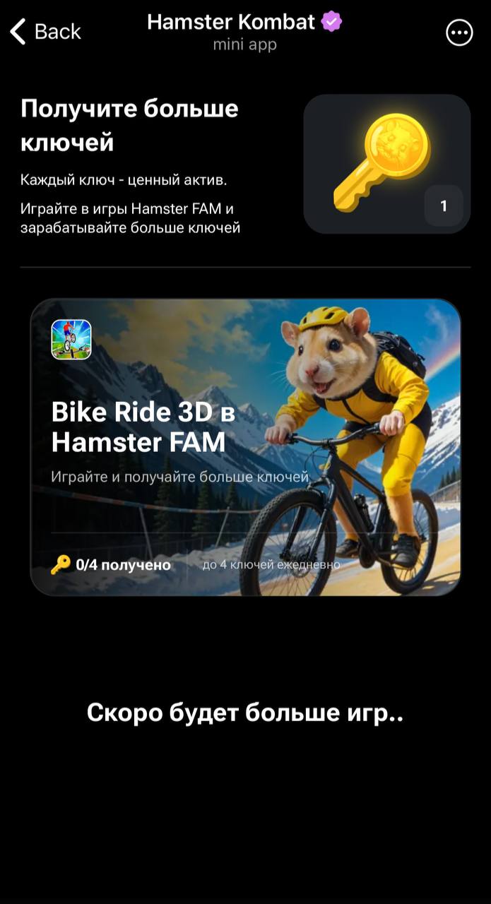 Нажав на кнопку «играть», игрок переносится на страницу приложения в App Store или Play Market. Создатели Hamster Kombat обещают, что участие в «гонке хомяков» принесет пользователям до четырех ценных ключей.