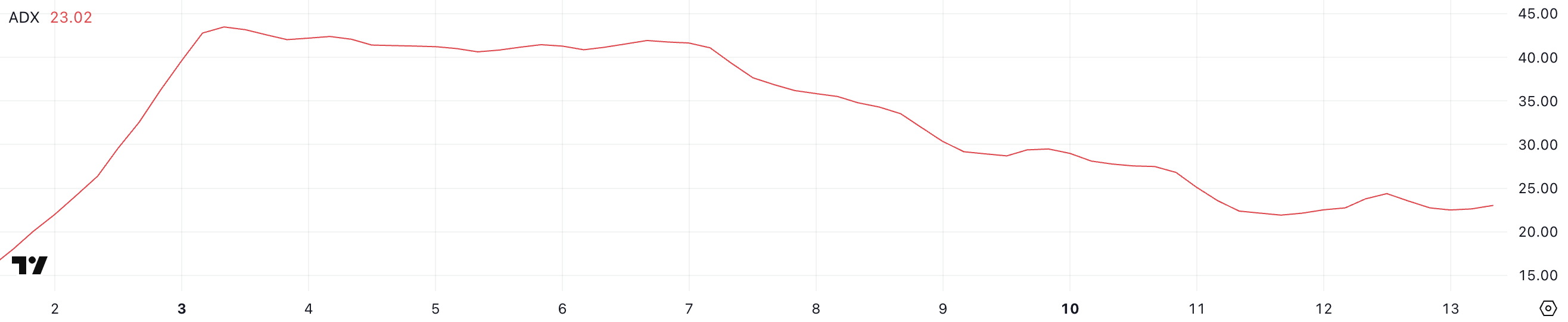 Значения индикатора ADX для HBAR снизились за последние три дня — с 28,9 до 23. При этом значения ниже порога 25 означают слабость текущего тренда — то есть, давление продавцов на рынке криптовалюты становится менее значительным.