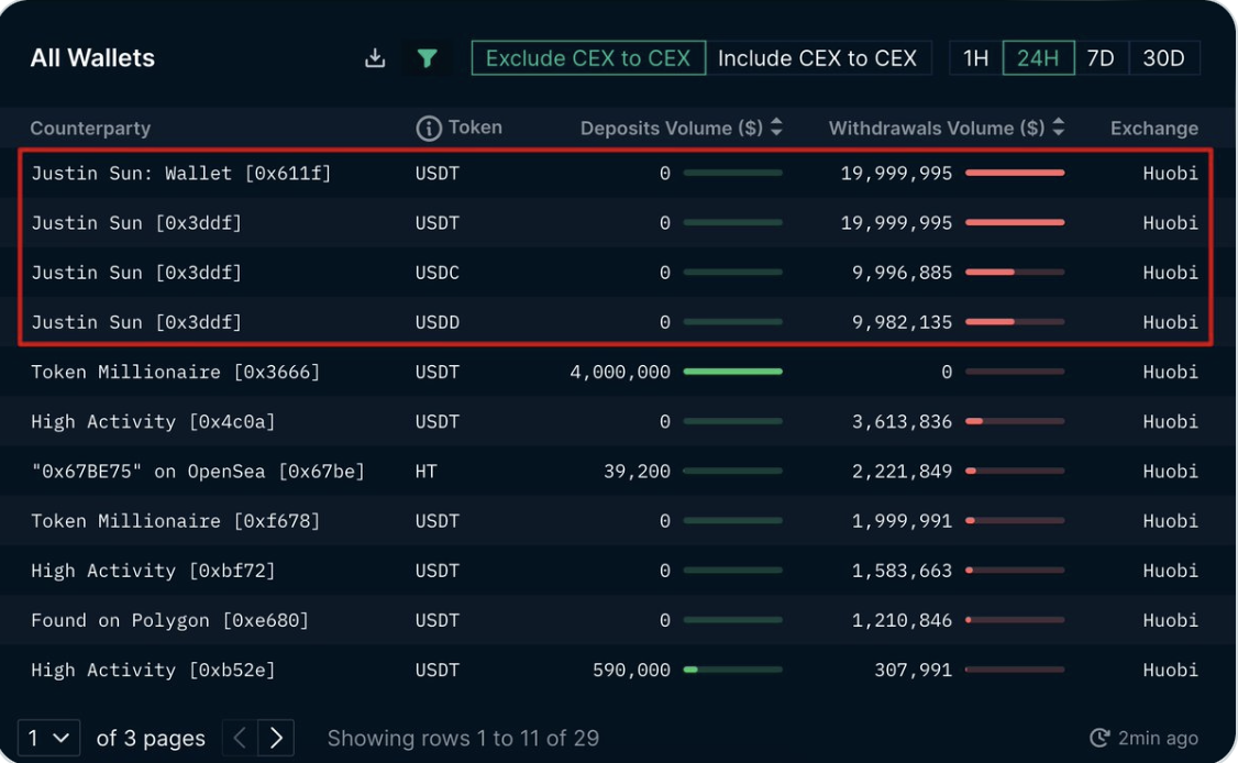«Около 12 часов назад #JustinSun вывел стейблкоины на $80млн из кошельков на #Huobi, включая $40 млн в USDT, $20 млн в USDC и $20 млн в USDD. Затем он перевел $40 млн в USDT и $20 млн в USDC на #Aave и #JustLend».