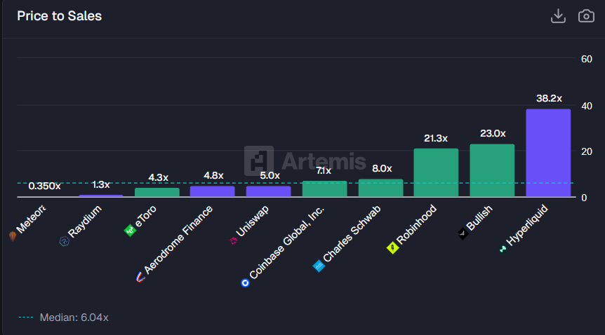 Разрыв более чем пятикратный. Рынок ожидает от Hyperliquid значительно более высоких темпов роста.