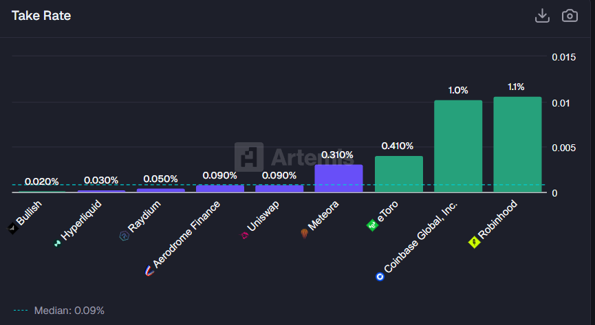 Централизованная биржа зарабатывает больше с каждого доллара оборота, но высокая комиссия делает ее менее конкурентоспособной на фоне площадок с минимальными издержками. При этом модели монетизации централизованных и децентрализованных площадок частично различаются, поэтому сравнение не полностью симметрично.