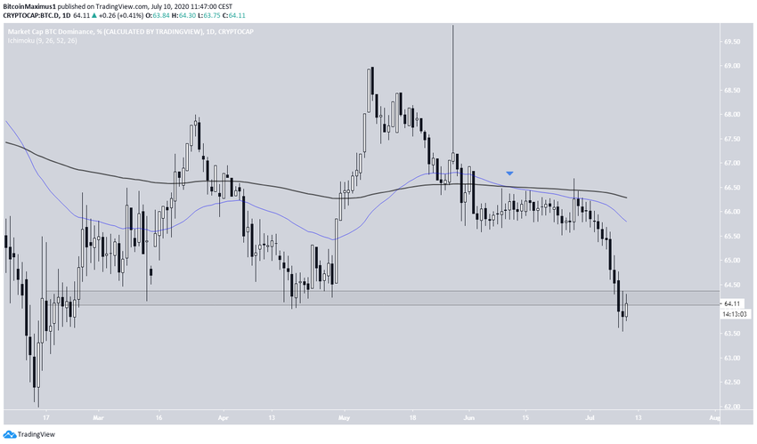 Очень сильная поддержка расположена в области 62% – BTCD не торговался ниже нее с июля 2019 года.