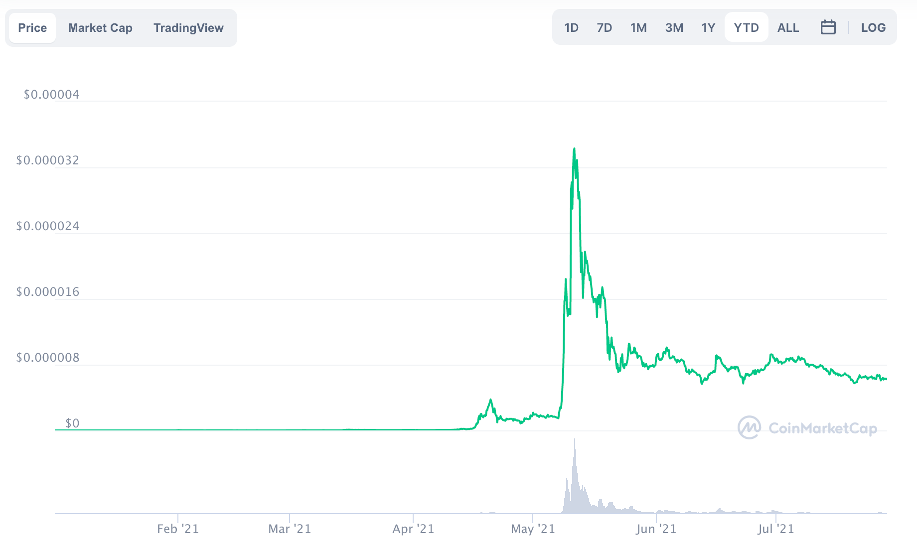 Кроме того, когда стало известно, что Виталик отдал все свои SHIB, курс токена рухнул на 50%. По данным статистики, 12 мая, перед тем как Виталик решил расстаться со своими SHIB, мемкоин стоил $0,000028. Спустя 24 часа цена упала к $0,000021 и продолжила снижаться. С тех пор SHIB и близко не подходил к майским высотам. На момент публикации один SHIB стоит $0,000006.