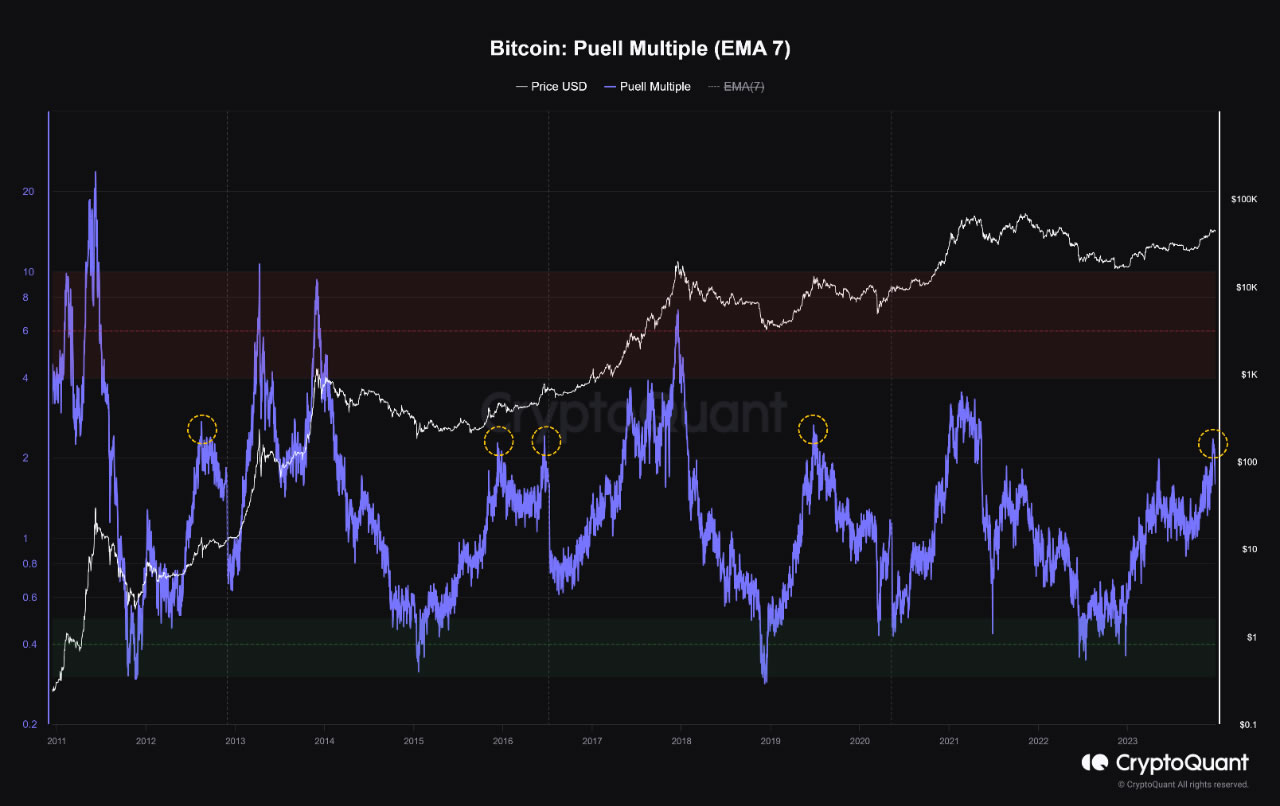 «Такое постоянство говорит о том, что мультипликатор Пьюэлла может служить ценным индикатором для инвесторов, предупреждая о потенциальных разворотах рынка, когда он достигает этих специфических уровней сопротивления», — прокомментировали в CryptoQuant.