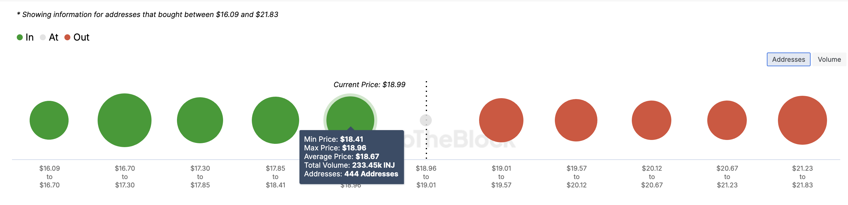 Это указывает на сильную поддержку между $18,41 и $18,96. Это означает, что INJ, вероятно, преодолеет отметку $19,30 в краткосрочной перспективе.