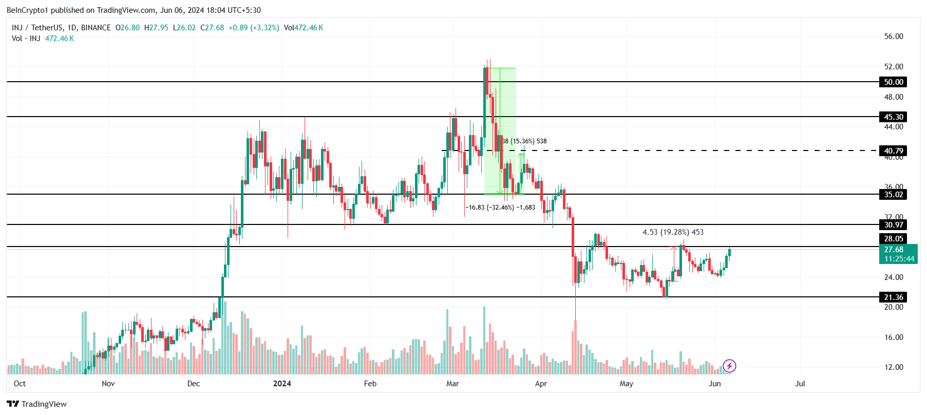 Injective (INJ) пытается оправиться после недавних потерь на фоне растущего оптимизма инвесторов.