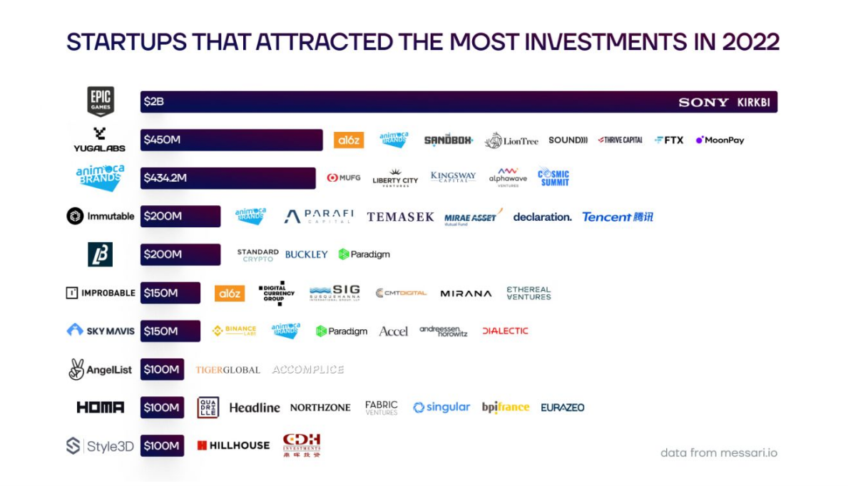 Так, особо можно выделить игрового тяжеловеса Epic Games, который привлек $2 млрд инвестиций от Sony и KIRKBI, владельца LEGO. Согласно руководству компании, эти средства пойдут на развитие концепта и поддержку устойчивого роста метавселенной.