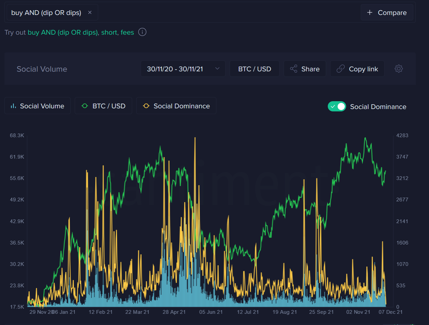Инвесторы не воодушевились недавним падением биткоина до ~$53650. К такому выводу пришли эксперты Santiment. Они заметили, что на фоне падения цены биткоина розничные инвесторы активно призывали в социальных сетях «откупать дно».
