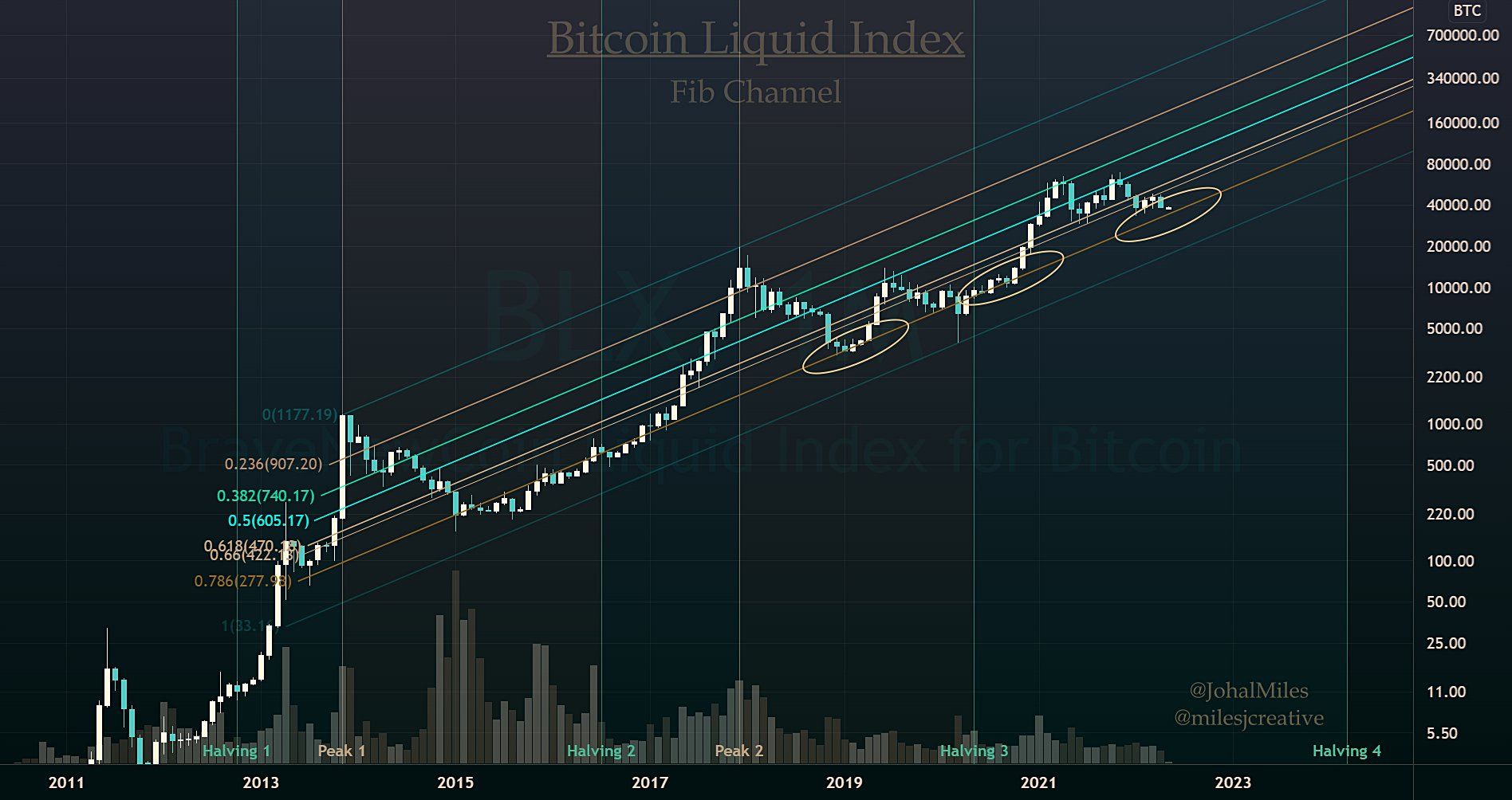 Трейдер Джохал Майлз, в свою очередь, обратил внимание на то, как движется BTC в «рамках» уровней Фибоначчи. Он отметил, что касание и боковик близ текущего уровня неоднократно заканчивались для биткоина выходом в рост.