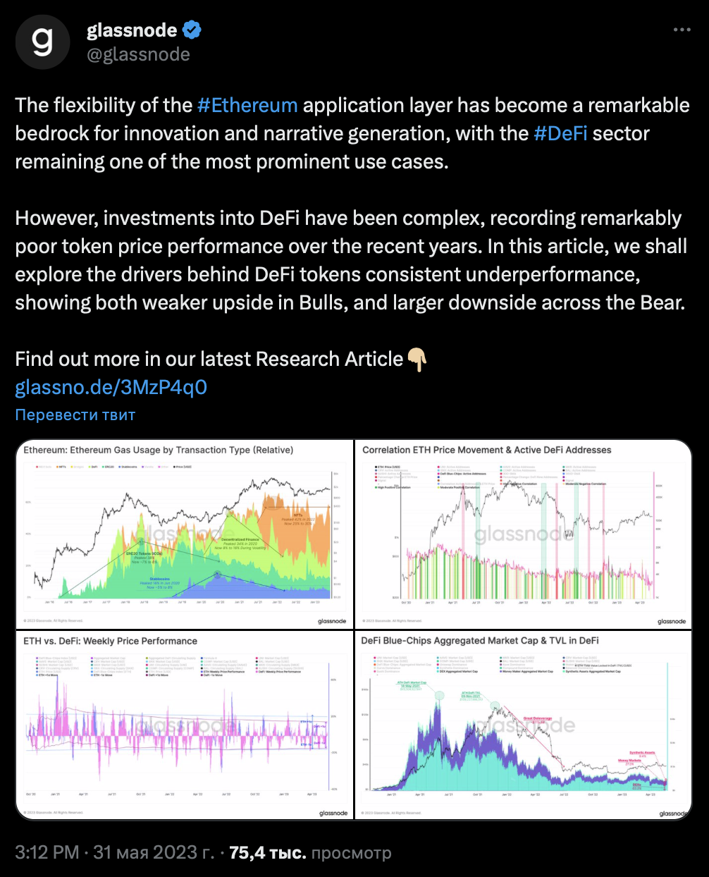 Компания также отметила, что рыночная капитализация сегмента DeFi составляет всего 12% от исторического максимума, достигнутого в ноябре 2021 года.