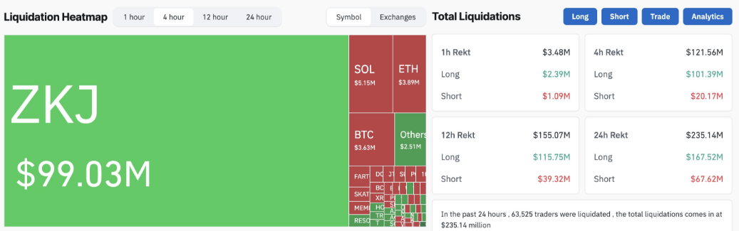 Вывод ликвидности и агрессивные распродажи вызвали падение цены, что привело к волне ликвидаций длинных позиций по ZKJ.