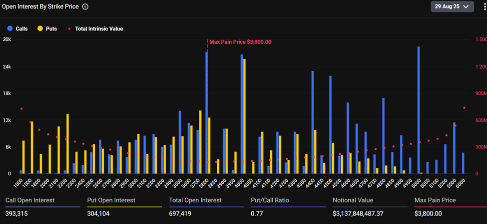 Аналитики Deribit отмечают, что активность по ETH указывает на осторожный оптимизм, однако признаки слабости в сравнении с BTC сохраняются. Наиболее важными остаются уровни $3 800 и $5 000.