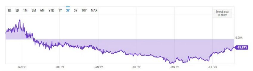 Несколько дней назад выяснилось, что показатель упал до двухлетнего минимума — до 15,87%. Такие изменения произошли как раз на фоне того, что одобрение первого спотового биткоин-ETF в США ожидается уже 10 января следующего года.