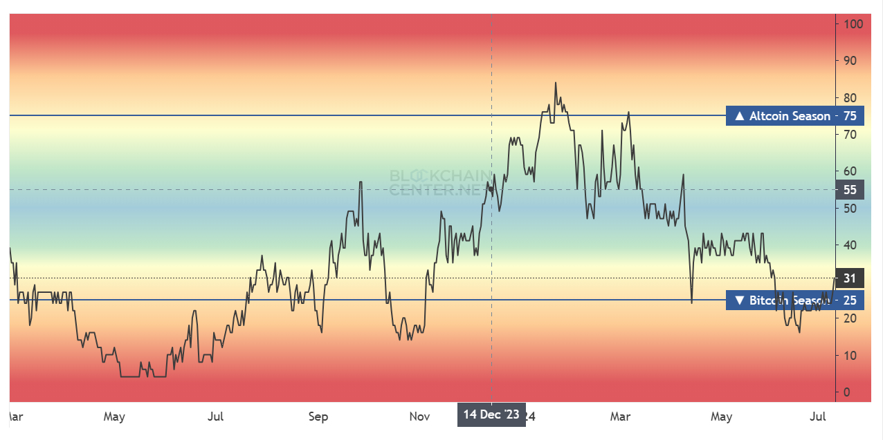 Растущий спрос институциональных инвесторов на биткоин (BTC) негативно повлиял на возможность скорого наступления сезона альткоинов