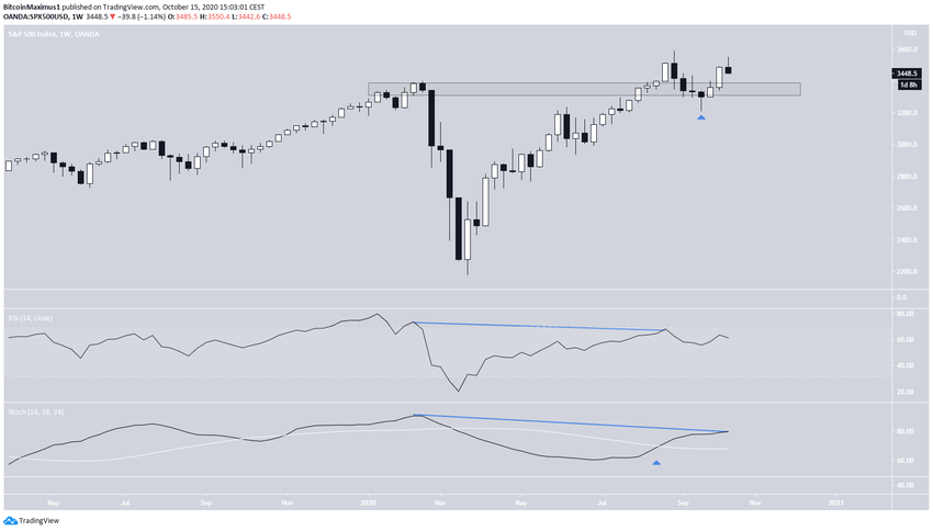 Sponsored2 сентября индекс SPX достиг максимума на $3588, поглотив прежний февральский пик. Впоследствии индекс немого откатился и проверил на прочность в качестве поддержки область $3300. На графике появился длинный нижний фитиль, после чего SPX начал расти.