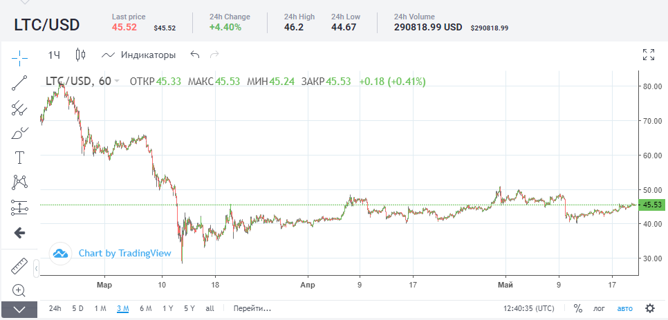 Накануне второго халвинга в 2016 году цена на Litecoin возросла с $4.15 до почти $9, но после сокращения награды снова вернулась на прежний уровень. Вскоре начался активный рост токена и к концу 2017 года стоимость равнялась $53, что во многом обусловлено скачком цены на биткоин. До халвинга 2020 года Litecoin торговался в диапазоне $47. 11 мая цена упала до $40. На 20 мая стоимость одной монеты равна $45.53
