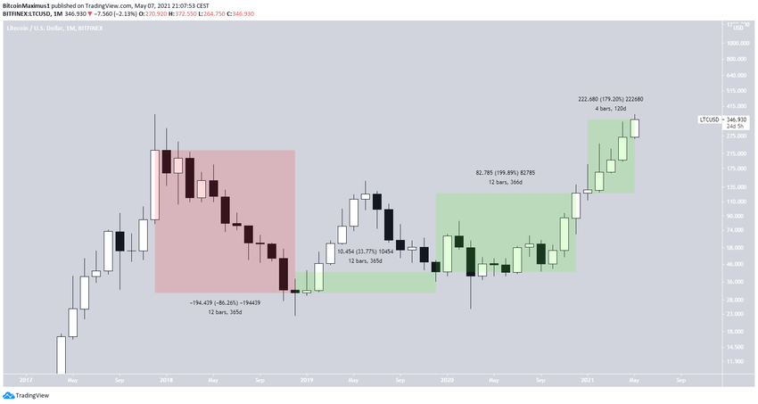 Редакция BeInCrypto решила вспомнить, как изменялся на протяжении последних лет курс Litecoin (LTC) и как это соотносится с ситуацией в 2021 году.