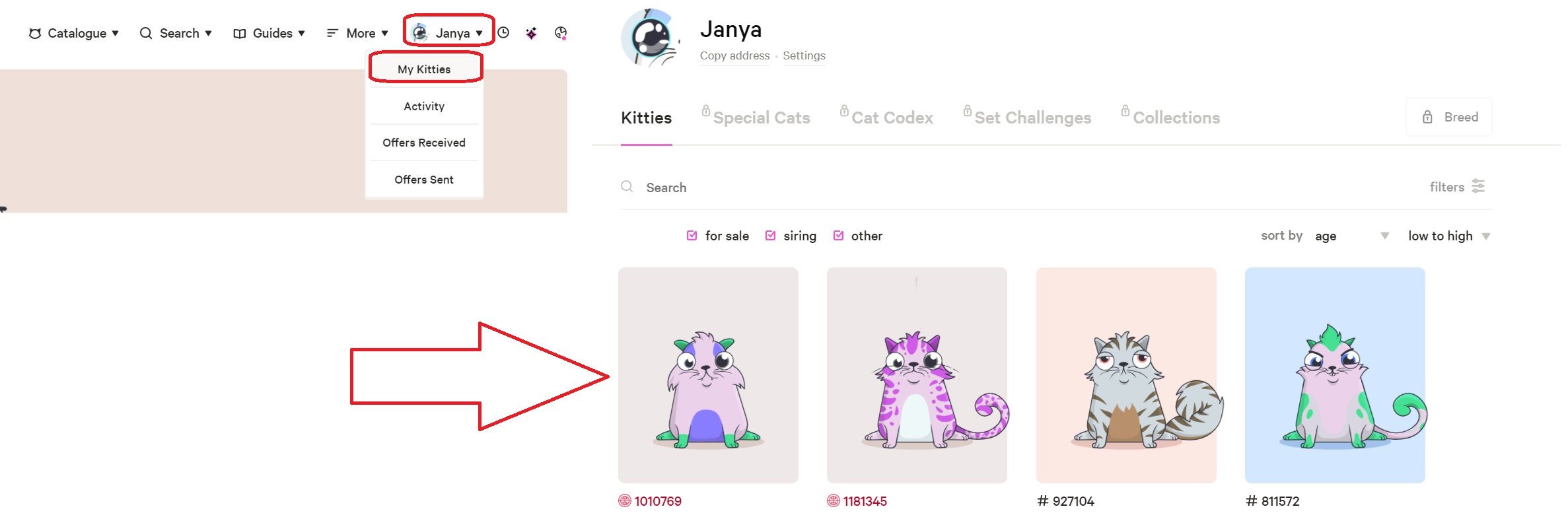 При необходимости, в личном кабинете CryptoKitties также можно выставлять котят на продажу.
