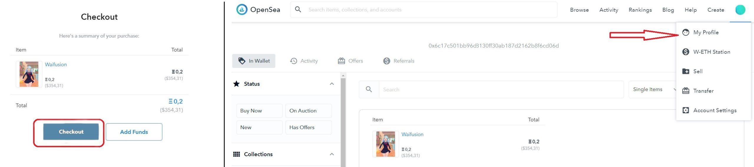 После того, как средства поступят на счет, пользователь сможет начать шопинг на OpenSea.