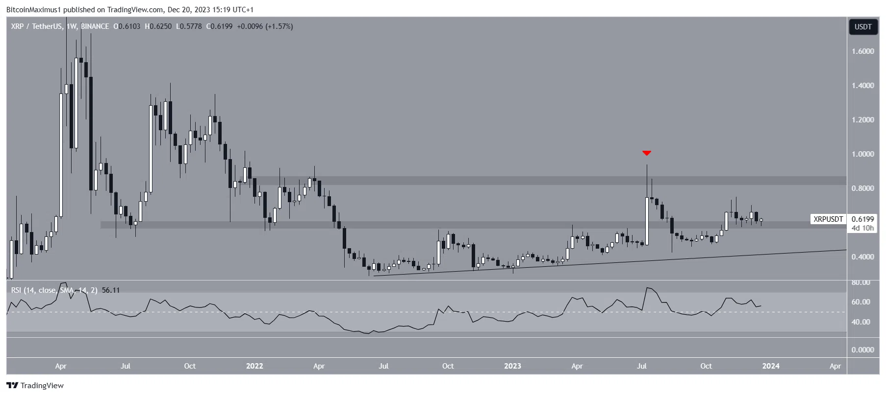 Разбираемся, есть ли у XRP шансы отскочить от текущей зоны поддержки и обновить максимум 2023 года.