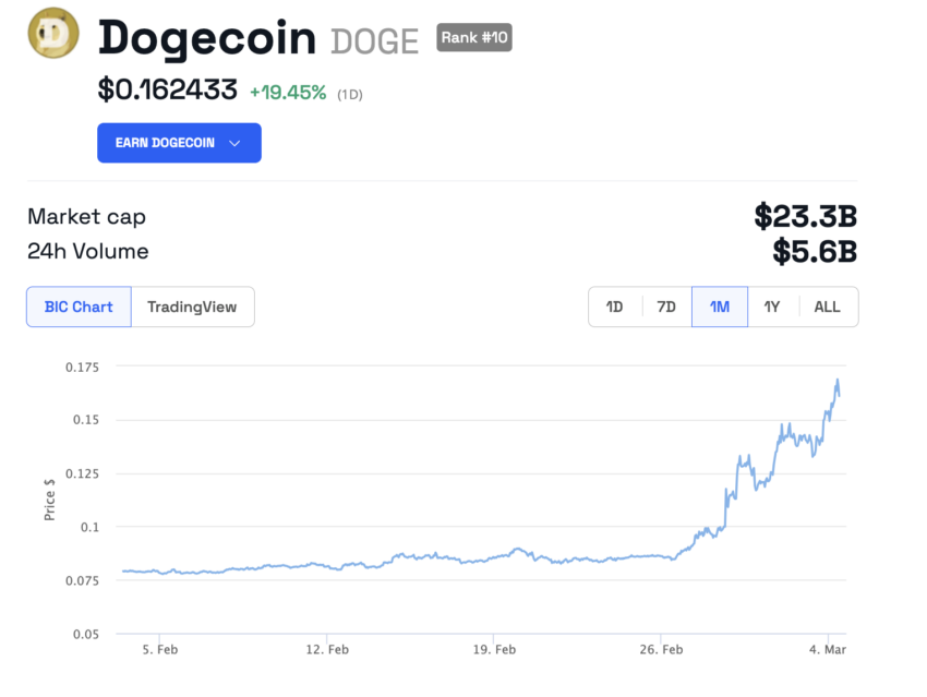 «В настоящее время Dogecoin стоит $0,15. Когда он достигнет $0,20, у меня будет $1 млн в DOGE», — написал Контессото на платформе X (бывший Twitter).