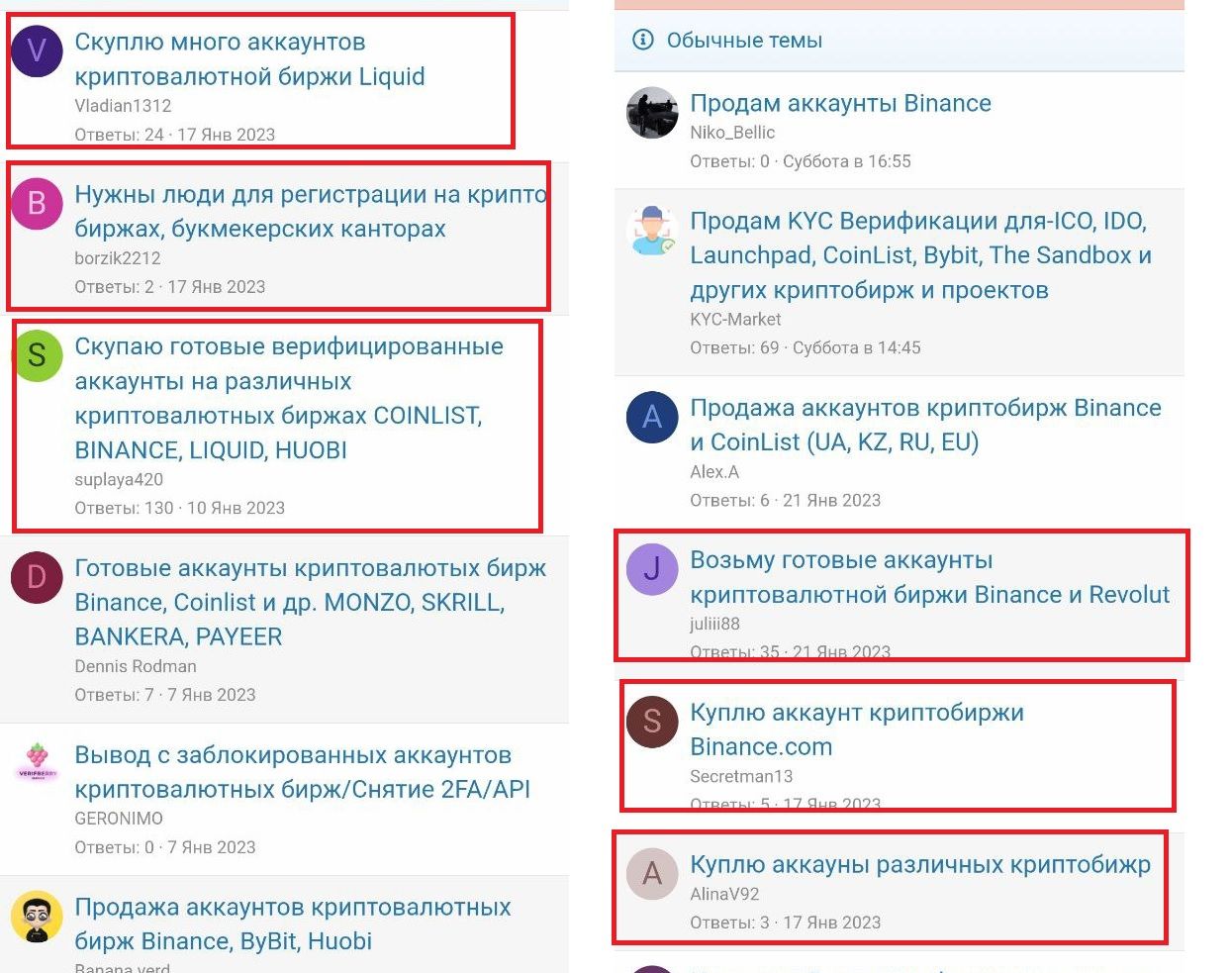 При этом на различных форумах в сети продавцы предлагают скупку уже зарегистрированных биржевых аккаунтов для их дальнейшей перепродажи. Также многие ищут людей, которые будут под заказ регистрировать учетные записи на определенных платформах.