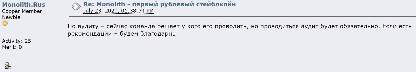 Несмотря на нападки, представители Monolithos намерены доказать честность проекта. С этой целью они обещают провести аудит смарт-контрактов.