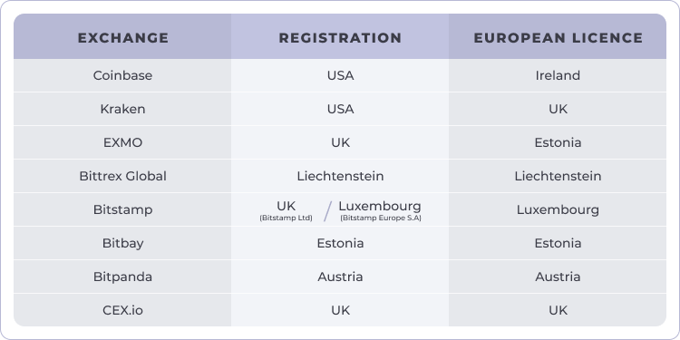 Таким образом, было отобрано восемь криптовалютных бирж с европейскими лицензиями: