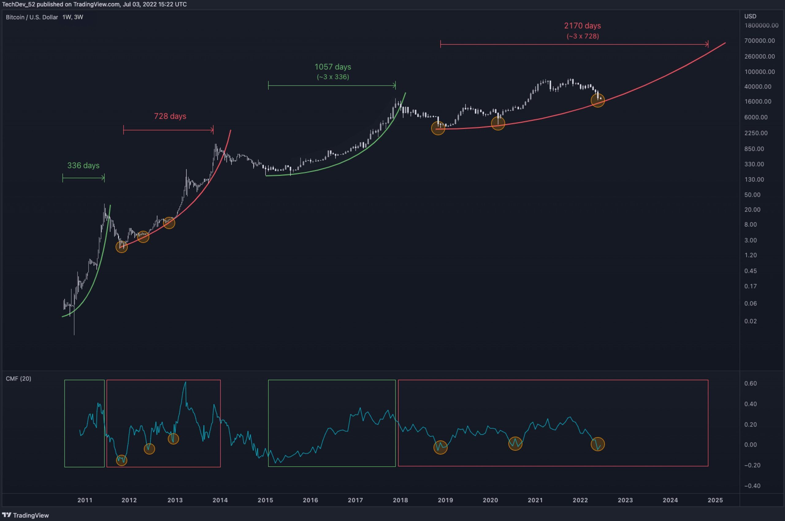 Sponsored SponsoredАналитик TechDev считает, что следующий халвинг поможет вывести биткоин к $700 тыс. В своих расчетах участник рынка использовал теорию, согласно которой BTC движется по параболической траектории. При этом TechDev обратил внимание на то, что циклы движения биткоина стали длиннее примерно в 3 раза от значений начала 2010-х годов. По этой логике цикл роста, который может привести BTC к новым максимумам, растянется на 2170 дней. По подсчетам аналитика, текущая траектория параболы может привести биткоин к $700 тыс. до 2025 года.