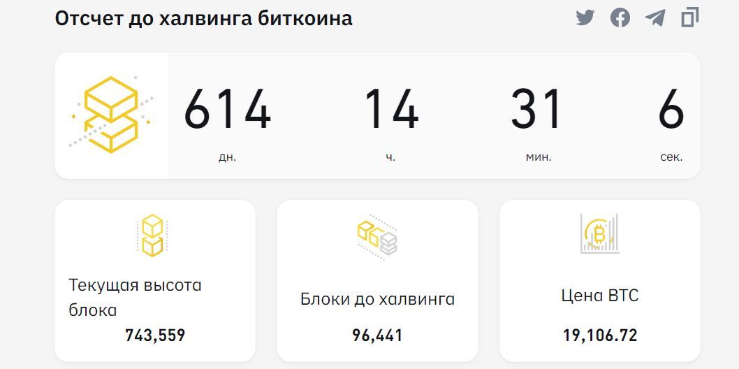 До следующего снижения темпов добычи BTC осталось чуть больше 600 дней. Если скорость работы сети существенно не изменится, событие может произойти в начале марта 2024 года.