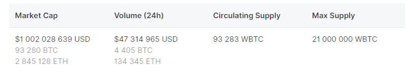Рыночная капитализация клона биткоина в блокчейн-сети Ethereum, Wrapped Bitcoin (WBTC), преодолела отметку в $1 млрд. На момент написания материала, капитализация WBTC составляет $1 002 028 639.