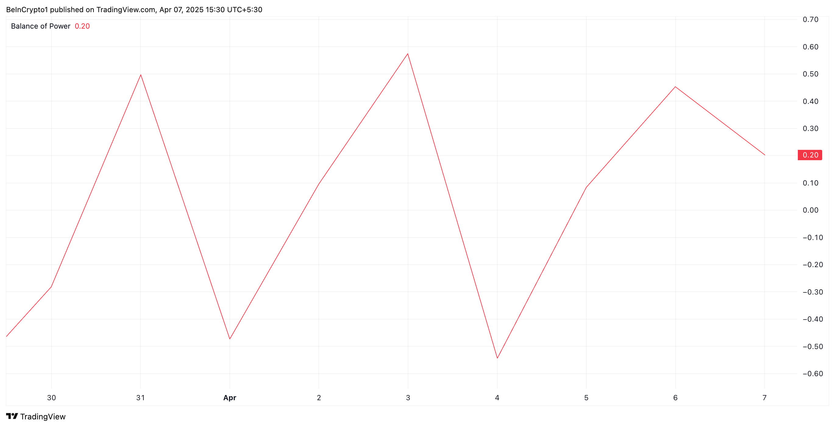 Это подтверждает положительный индикатор Balance of Power (BoP) на дневном графике. На момент публикации его значение составляет 0,20.