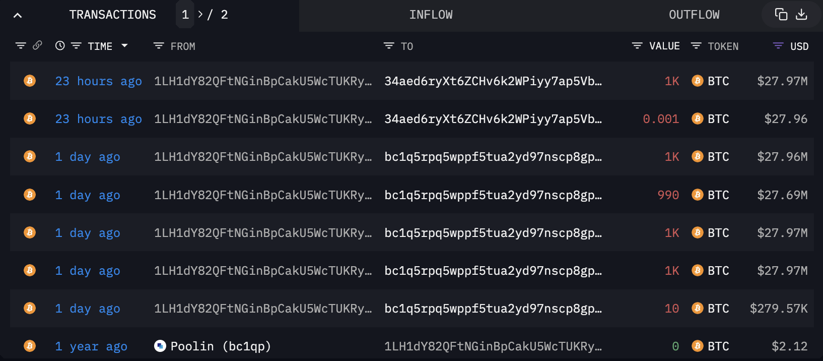 Еще один биткоин-кит пробудился от долгого сна: кошелек 1LH1dY переместил 5000 BTC впервые с 2020 года.