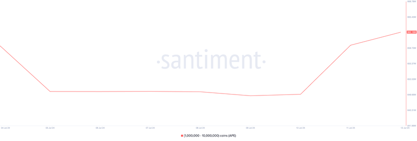 Активность крупных держателей часто свидетельствует о доверии к активу или стратегическом позиционировании перед изменениями на рынке. Если спрос на APE продолжит расти, цена альткоина может подняться до $0,92.