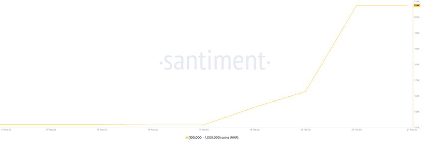DeFi-токен MKR привлек внимание китов на этой неделе. Это видно по увеличению его запасов у крупных держателей, которые владеют от 100 000 до 1 000 000 токенов.