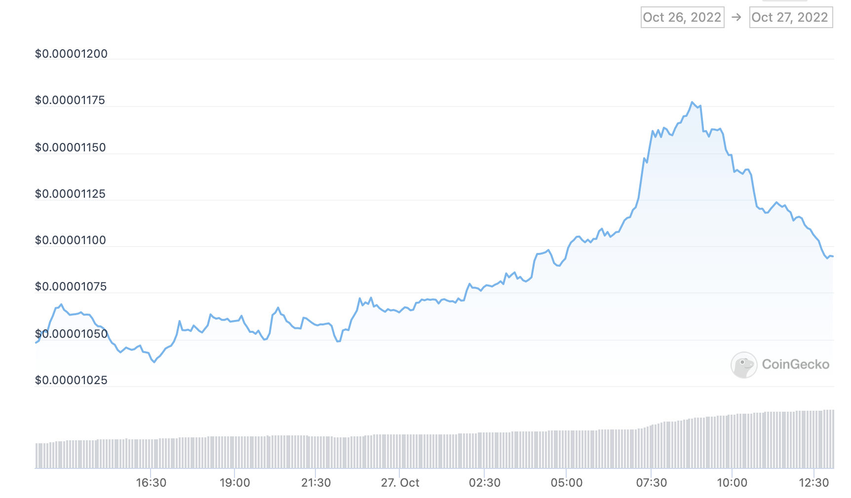 За минувшие сутки SHIB подорожал на 5% до $0,00011, однако в моменте цена приближалась к $0,00012.