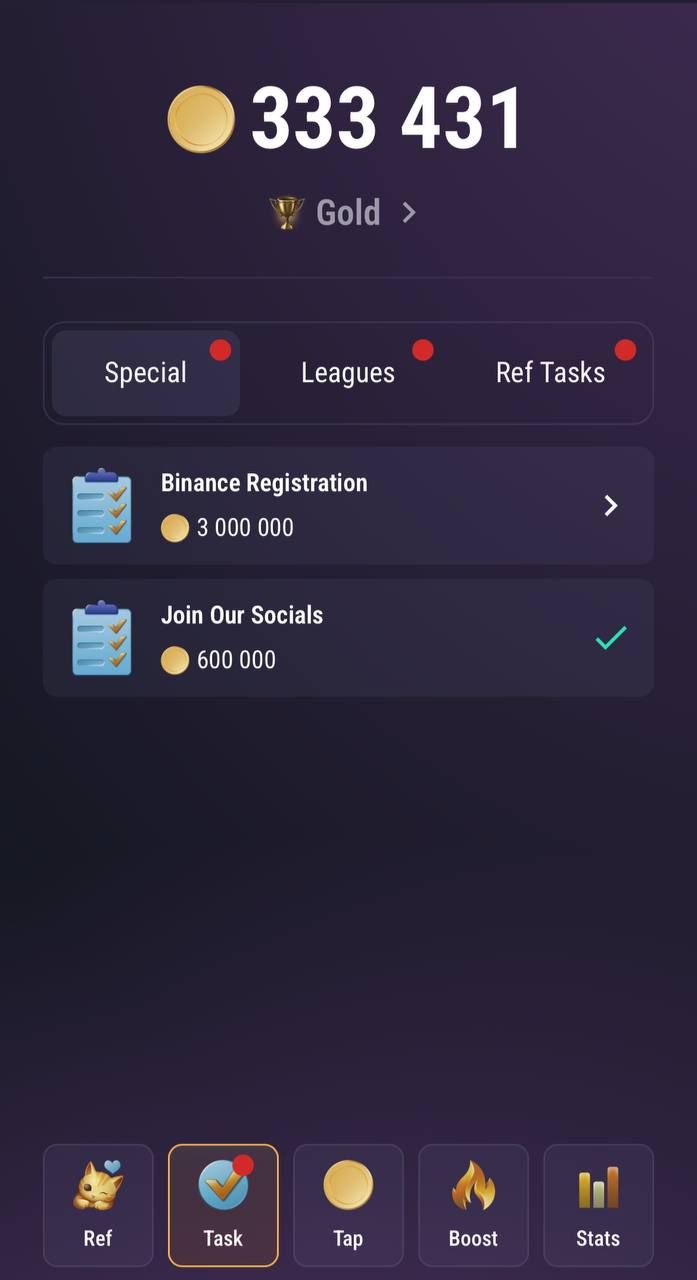 Sponsored SponsoredВ TapSwap также есть ежедневные задания, за которые можно получить дополнительные награды. Миссии варьируются от самых обычных действий (тапнуть по экрану определенное количество раз) до более сложных (подписаться на социальные сети проекта).