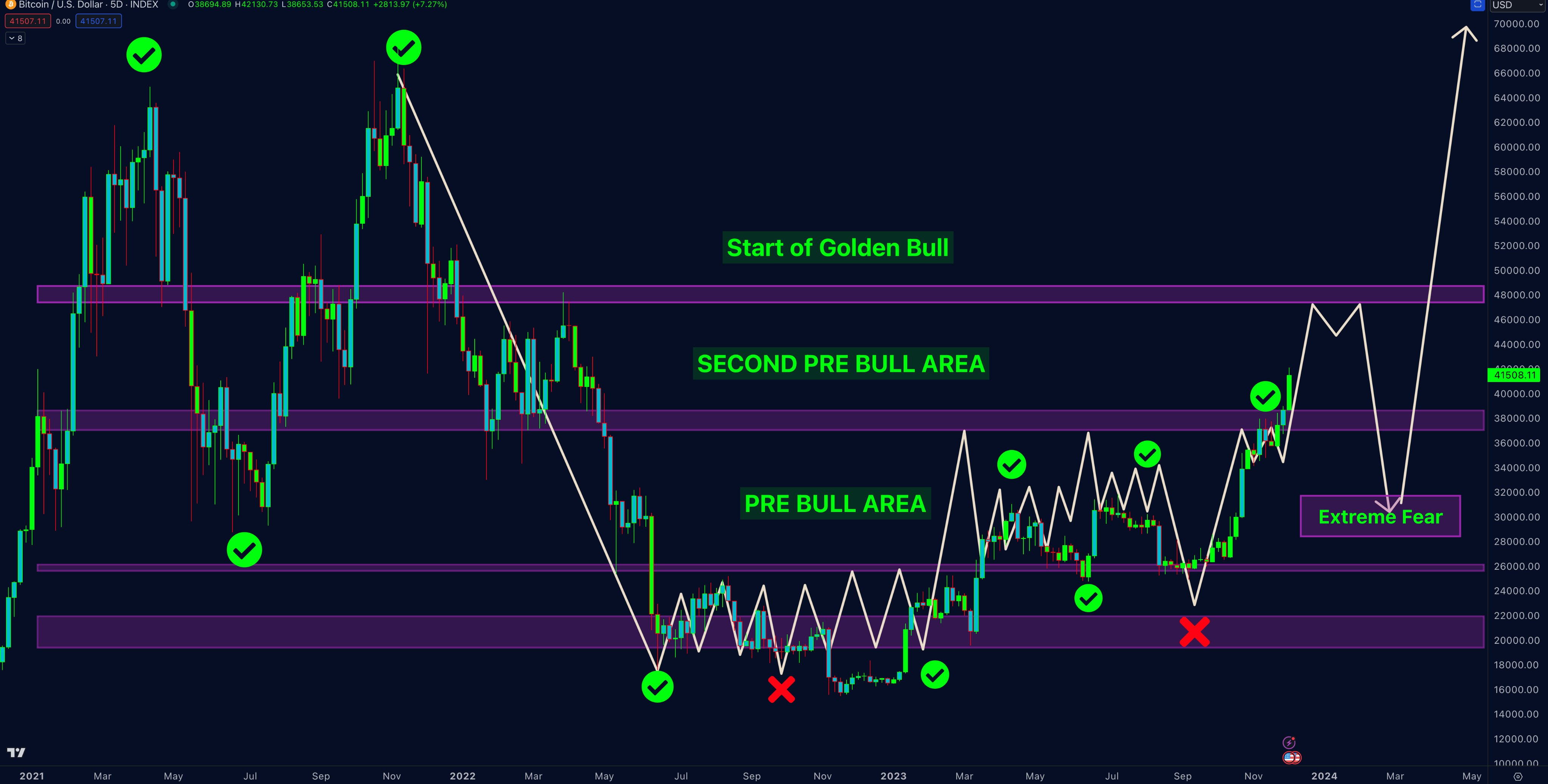 Аналитик Doctor Profit считает, что у BTC еще есть запас хода. Его прогноз биткоина не исключает движение монеты к $47-48 тыс. От этого уровня, как считает Doctor Profit, криптовалюта может скорректироваться на 20-30%, то есть вернуться в диапазон $33-38 тыс. Аналитик ждет минимумов в марте — в преддверии халвинга 2024, который состоится в апреле. После, по мнению Doctor Profit, BTC отправится обновлять абсолютный максимум.