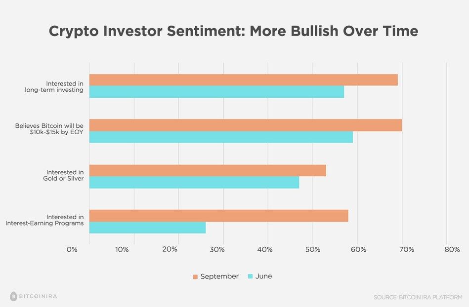 Исследования, проведенные аналитиками платформы Bitcoin IRA, показывают, что настроения инвесторов в отношении биткоина и других криптовалют улучшаются, а количество ходлеров монеты уже увеличилось на 20% в сравнении с июнем текущего года.